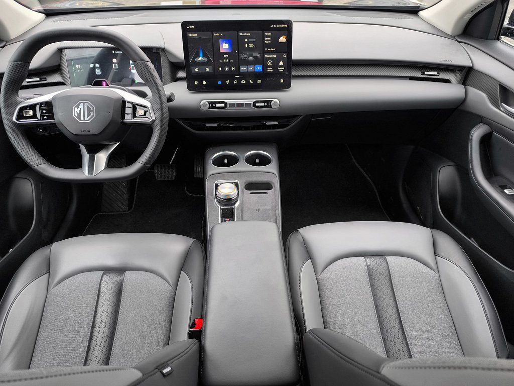 Asistent udržení v jízdním pruhu (LKA) s varováním před opuštěním pruhu systém (LDWS) a nouzové udržení pruhu (ELK), Systém varování před opuštěním jízdního pruhu (LDW), Inteligentní omezovač rychlosti (SAS), Asistent pro jízdu v dopravní koloně (TJA), Automatická dálková světla (IHC), Upozornění na vozy přijíždějící z boku při couvání (RCTA), Rádio AM/FM/DAB+, Online služby (další služby zahrnují Počasí, Živý provoz, Youtube, Spotify, TikTok), Bezdrátové připojení k Apple CarPlay™ a Android Auto™, Plánovač cesty EV, 12,8" HD dotyková obrazovka infotainmentu, Digitální přístrojový panel s 10,25" barevným displejem, 4 USB porty (3 přední - 2 typu C + 1 typu A na zpětném zrcátku, 1 zadní - typu C), Příjem digitálního rozhlasového vysílání (DAB), Systém sledování pozornosti řidiče (DMS), Přední středový airbag, Autohold s asistencí při rozjezdu do kopce, Systém aktivního řízení stability (ESP), Nouzový brzdový asistent (EBA), Alarm - elektronické zabezpečení, Akustické upozornění na nezapnutý bezpečnostní pás řidiče, Akustické upozornění na nezapnutý bezpečnostní pás spolujezdce, Varování před přijíždějícími vozidly při otevírání dveří (DOW), Systém ISOFIX na zadních sedadlech (2x), Čelní airbagy řidiče a spolujezdce (x2), deaktivace airbagu spolujezdce, Antiblokovací brzdový systém (ABS) & ,Elektronický systém rozdělení brzdného účinku (EBD), 18" kola z lehké slitiny ve stylu Rotor s aerodynamickým krytem, Možnost míry rekuperace elektrické energie (KERS, 4 úrovně), Možnost využití vozidla jako záložního zdroje energie (V2L), LED denní světlomety, LED zadní světlomety, Automatické světlomety, Stříbrné střešní ližiny, Zatmavená zadní okna, 360° panoramatická parkovací kamera, Zadní střešní spoiler, Zadní parkovací senzory, Elektricky nastavitelná, sklopná, vyhřívaná, černá zrcátka, Aktivní systém mřížky (AGS), Bezklíčový přístup a startování pomocí tlačítka, Výškově a podélně nastavitelný volant, Sluneční clona u řidiče a spolujezdce, Bluetooth klíč pro mobilní telefony, Ruční stmívání zpětného zrcátka, Předehřev baterie před nabíjením, Kůží potažený volant, Elektricky ovládané páté dveře, Možnost vlastního nastavení jízdních režimů (5 režimů), Osvětlení pro čtení vzadu, Jednopedálové ovládání zrychlování a zpomalování vozidla, Připojení k aplikaci iSmart, Automatická klimatizace s ventilačními otvory vzadu, Dešťový senzor, Elektrické ovládání předních a zadních oken, okno řidiče s funkcí AUTO a ochranou proti přivření, Automatická klimatizace, Vyhřívaný volant, Tepelné čerpadlo, Přední vyhřívaná sedadla, Čalounění v kombinaci kůže/látka, Středová loketní opěrka vzadu, Sedadlo řidiče s manuálně nastavitelnou bederní opěrkou, Sedadlo řidiče elektricky nastavitelné v 6 směrech, Sedadlo spolujezdce manuálně nastavitelné ve 4 směrech, Opěradlo zadních sedadel dělené v poměru 60:40, Třetí zadní brzdové LED světlo, Zadní mlhové světlo, Full LED světlomety, Audiosystém s 12,8" barevným dotykovým displejem, 6 reproduktory, tuner AM/FM, možnost přehrávání MP3, hlasové ovládání (iSMART), Systém automatického nouzového brzdění (AEB), Aktivní systém pro udržení jízdního pruhu (LKA), Adaptivní tempomat (ACC) s omezovačem rychlosti, Automatické nouzové brzdění s detekcí chodců, cyklistů i motocyklů (AEB), MG Pilot nastavitelný profil, Systém sledování mrtvého úhlu (BSM), Upozornění na změnu jízdního pruhu (LCA), Upozornění na hrozící kolizi za vozidlem (RCW), Ovládání některých funkcí pomocí aplikace iSmart (klimatizace, vyhřívání sedadel, volantu, kontrola nabití baterie,…), Vestavěná satelitní navigace, Boční airbagy řidiče a spolujezdce (x2), hlavové (okenní) airbagy vpředu a vzadu (x2), Elektronický imobilizér, Sluneční clona u řidiče a spolujezdce s kosmetickým zrcátkem, Elektricky ovládaná přední a zadní okna, Vyhřívání předních sedadel